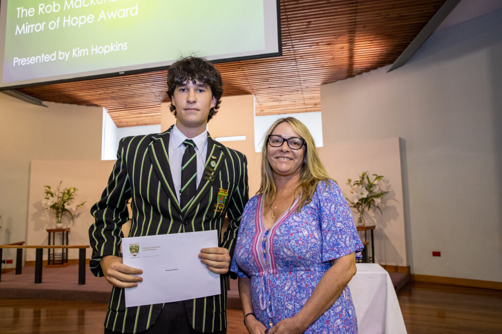 The 2023 award recipient is Year 12 student, George, presented by Mrs Kim Hopkins. George has been involved in rebuilding the Currumbin Special School’s community garden project. He has raised money to fund the materials for the project, build a wheelchair path and has also worked with indigenous elders to construct a yarning circle at the school.