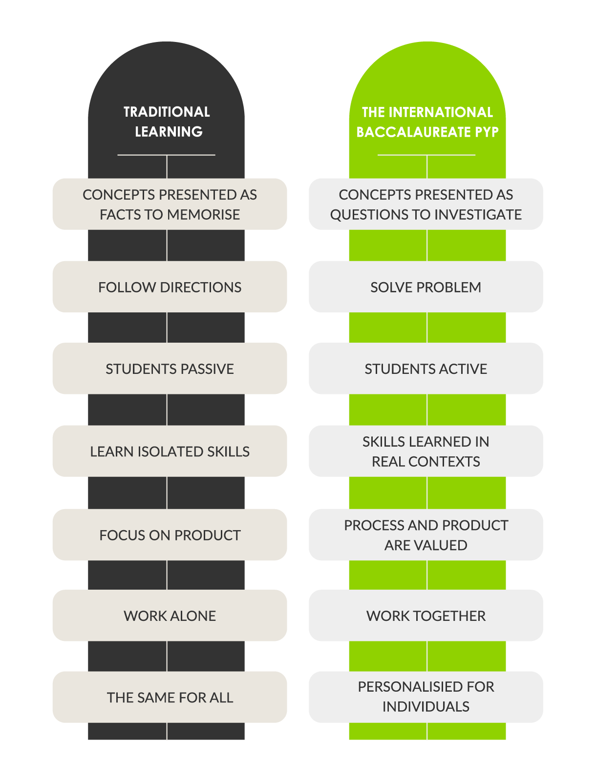 The International Baccalaureate Primary Years Programme (PYP) is a curriculum framework designed for students aged 3 to 12. It prepares students for the intellectual challenges of further education and their future careers, focusing on the development of the whole child as an inquirer, both in the classroom and in the world outside.